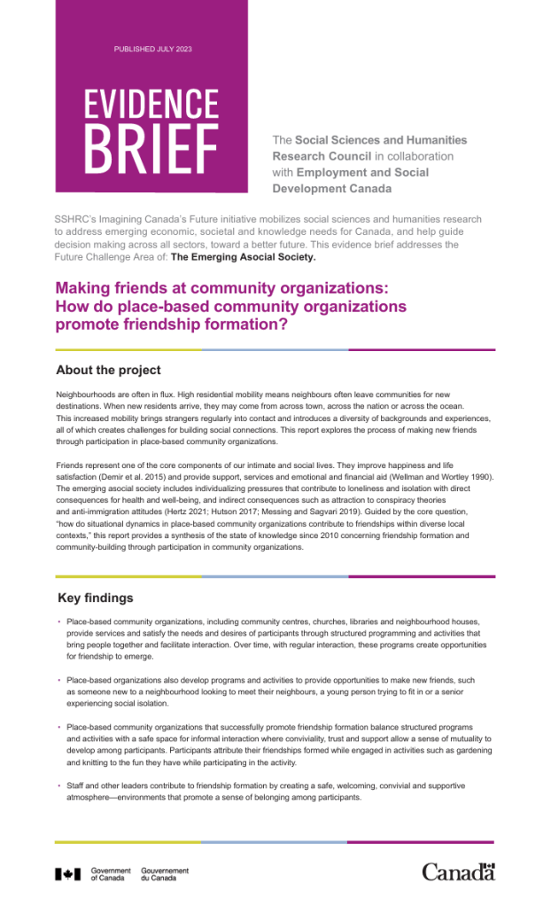 Making Friends at Community Organisations: How do place-based community organizations promote friendship formation?